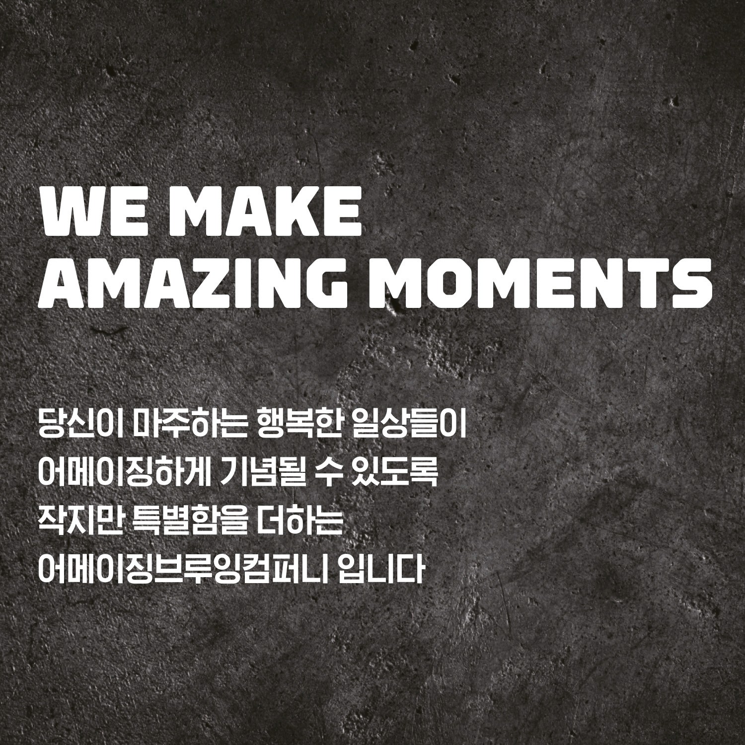 우리는 당신이 일상에서 마주하는 순간들을 더욱 기념되고 어메이징하게 즐길 수 있도록 작지함 특별함을 더하는 어메이징 브루잉 컴퍼니입니다.