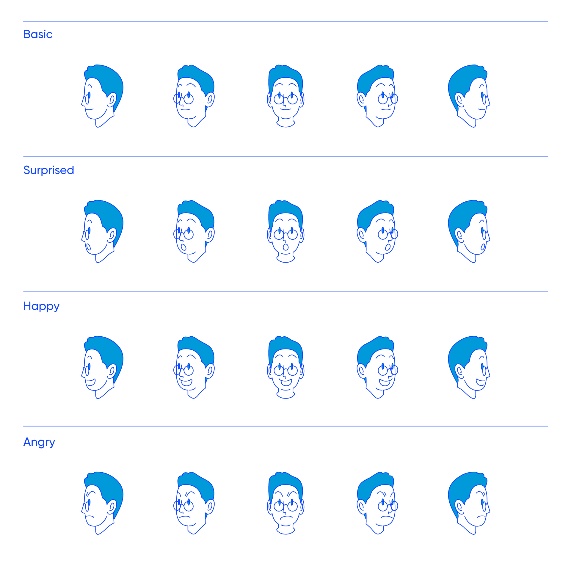 카닥을 대표하는 페르소나로서 풍부한 표정 뿐만이 아니라 다양한 동작, 방향, 정보를 표현가능하게 개발되어 공간과 디지털 환경에서 더욱 생생하게 사용됩니다.