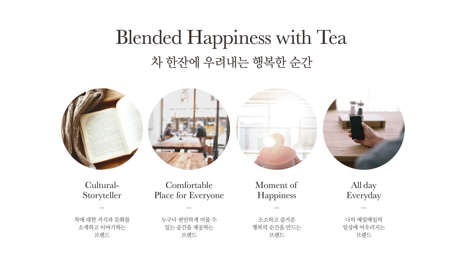 공차 브랜드의 이전의 것은 모두 버리고 완전히 새로운 이미지를 만들어야 할까? 우리의 결정은 ‘NO’였습니다. 우리는 기존의 공차가 형성해온 자산에 답이 있다는 생각을 하게 되었고, 그에 따라 Taiwanese Tea-Origin / Customizing / Active 라는, 공차가 그간 쌓아온 자산이자 핵심 가치이기도 한 세 가지 키워드를 설정하였습니다. 그리고 키워드들을 종합하여 ‘Blended’라는 새로운 브랜드 컨셉을 고안하였습니다.