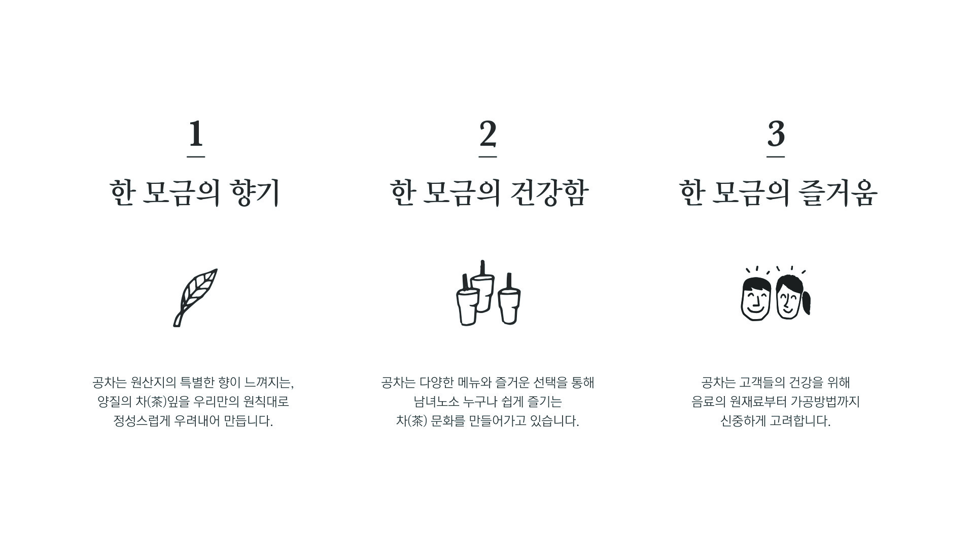 공차는 버블티를 우리나라의 대중적 음료로 자리 잡게 만드는 큰 역할을 수행하게 되었습니다. 하지만, 공차는 단지 ‘버블티 브랜드’로 자리 잡고 싶지 않았습니다. 버블티를 시작으로 다른 다양한 음료와 대만이 가지고 있는 특별한 차 문화를 전달하고, 그를 통해 대중적 인 차 문화의 확산과 ‘차 문화의 플랫폼’으로 거듭나고자 하는 큰 목표와 꿈을 가지고 있었습니다. 이러한 목표를 이루기 위해서는 공차 브랜드의 가장 중요한 가치에 대한 모색과, 그에 따른 브랜드 정체성의 확립이 필요했습니다.