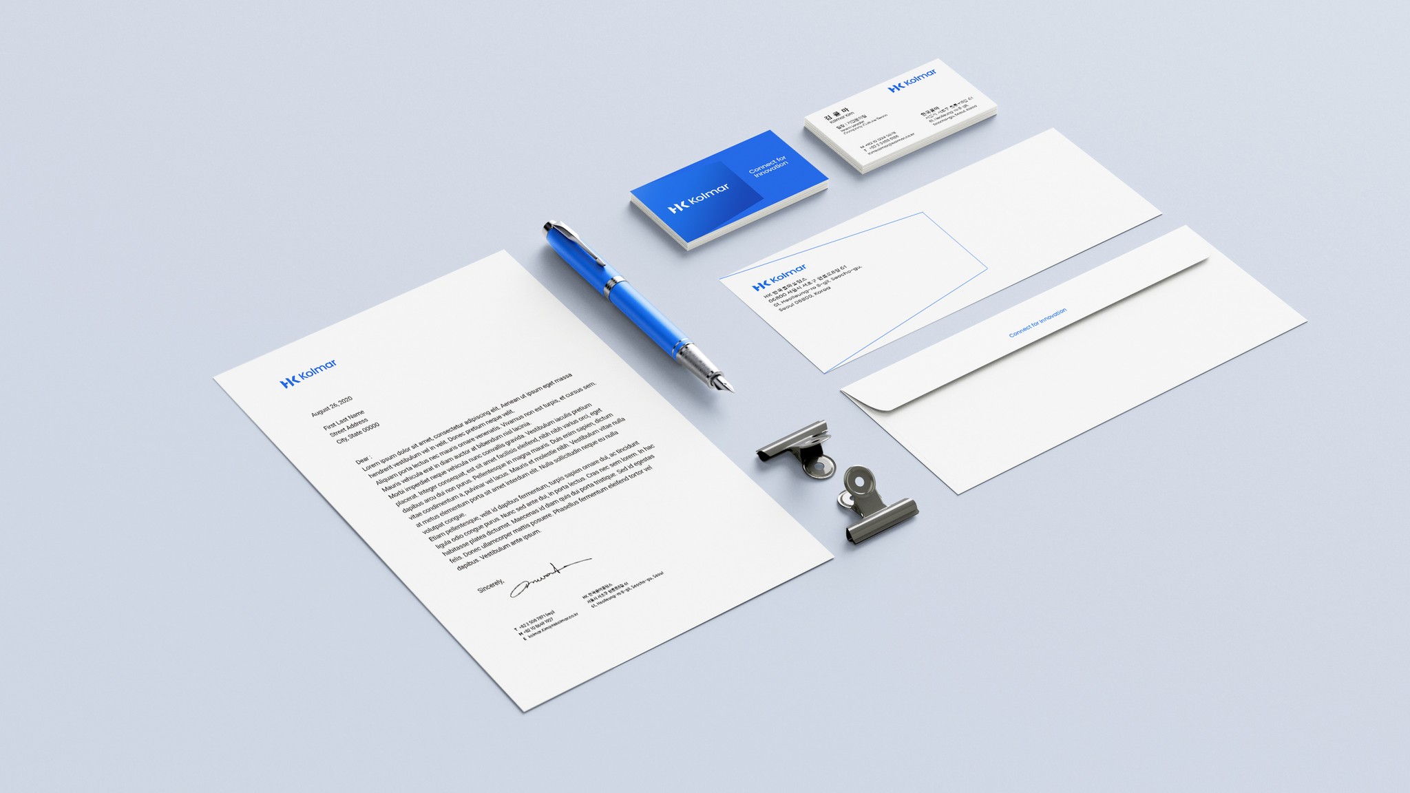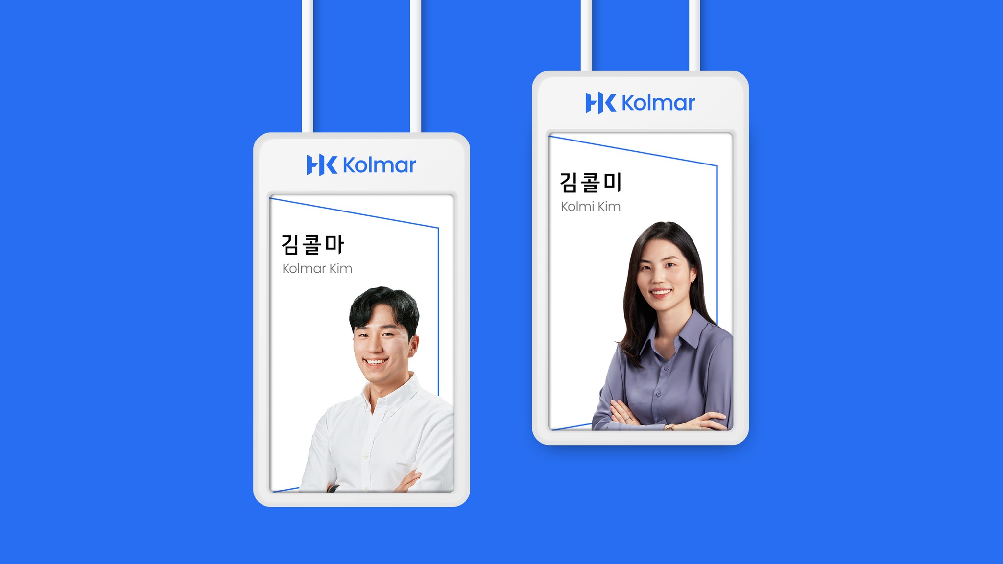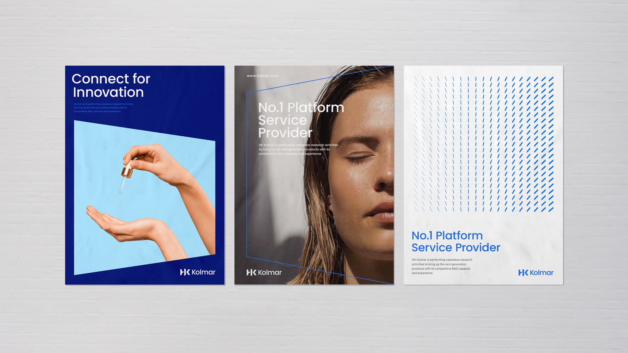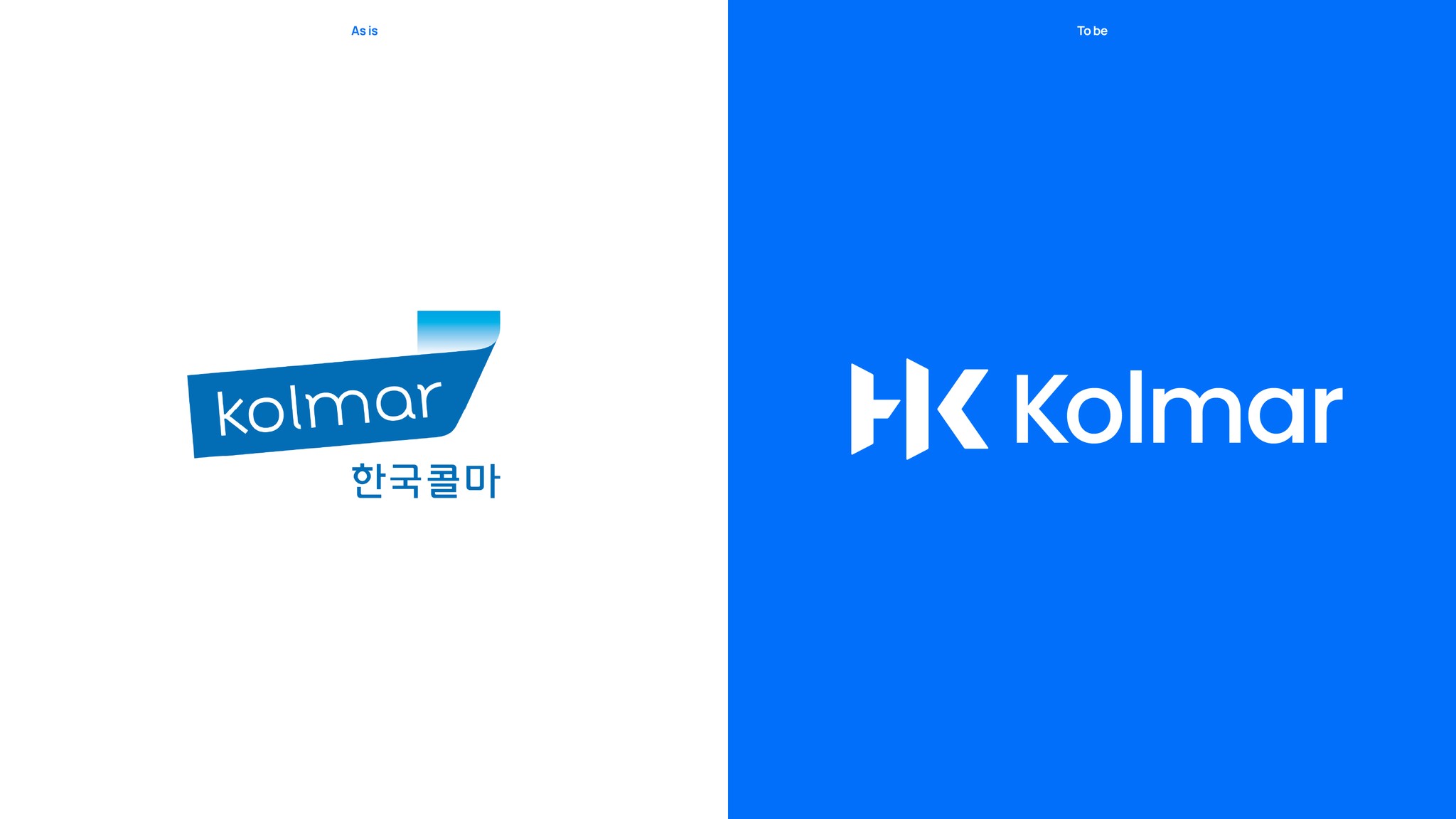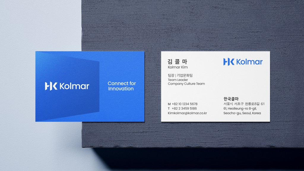 새로운 콜마의 로고는 HK콜마그룹이 독보적인 연구개발과 혁신으로 만들어온 플랫폼 서비스를 통해 사람과 기술, 그리고 기회를 연결해 고객의 비전을 실현하겠다는 의지를 담고 있습니다. 로고의 모티브인 영문 ‘HK’는 모태기업인 ‘한국콜마’의 헤리티지를 이어받은 것으로 연결, 혁신, 문(Door)을 키워드로 진취적이고 전문적인 이미지로 디자인 되었습니다. 역동적인 사선과 Innovation Blue 컬러는 신뢰와 더불어 혁신을 추구하는 기업의 이미지를 상징합니다.