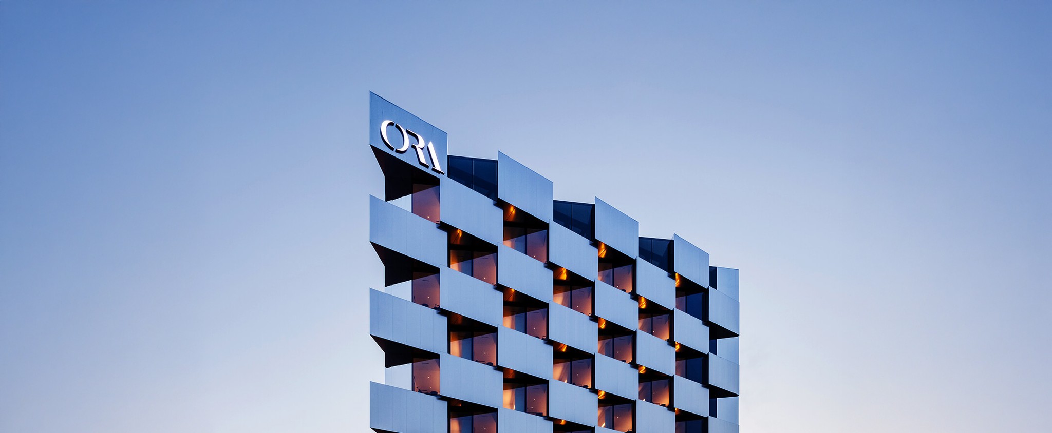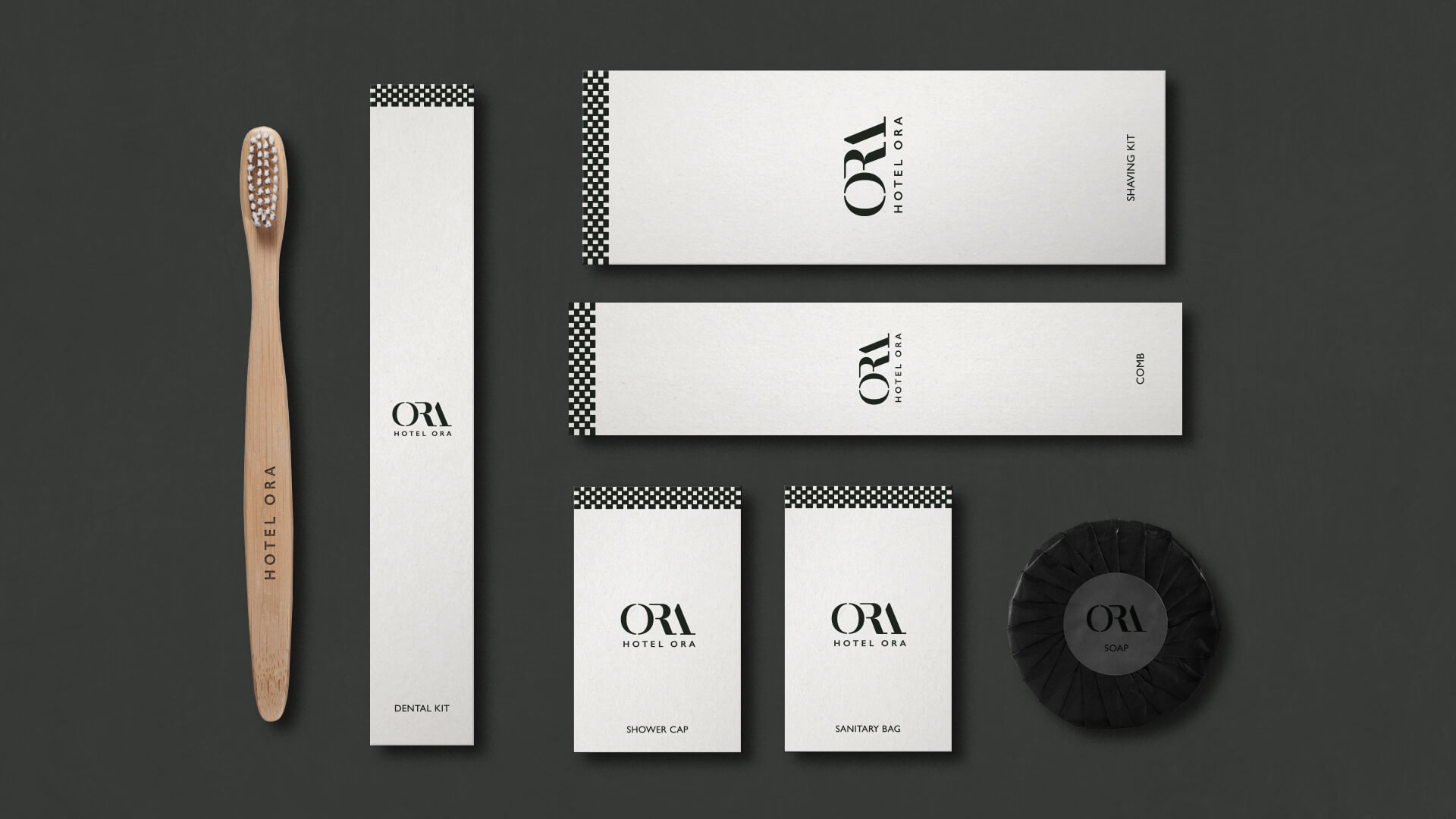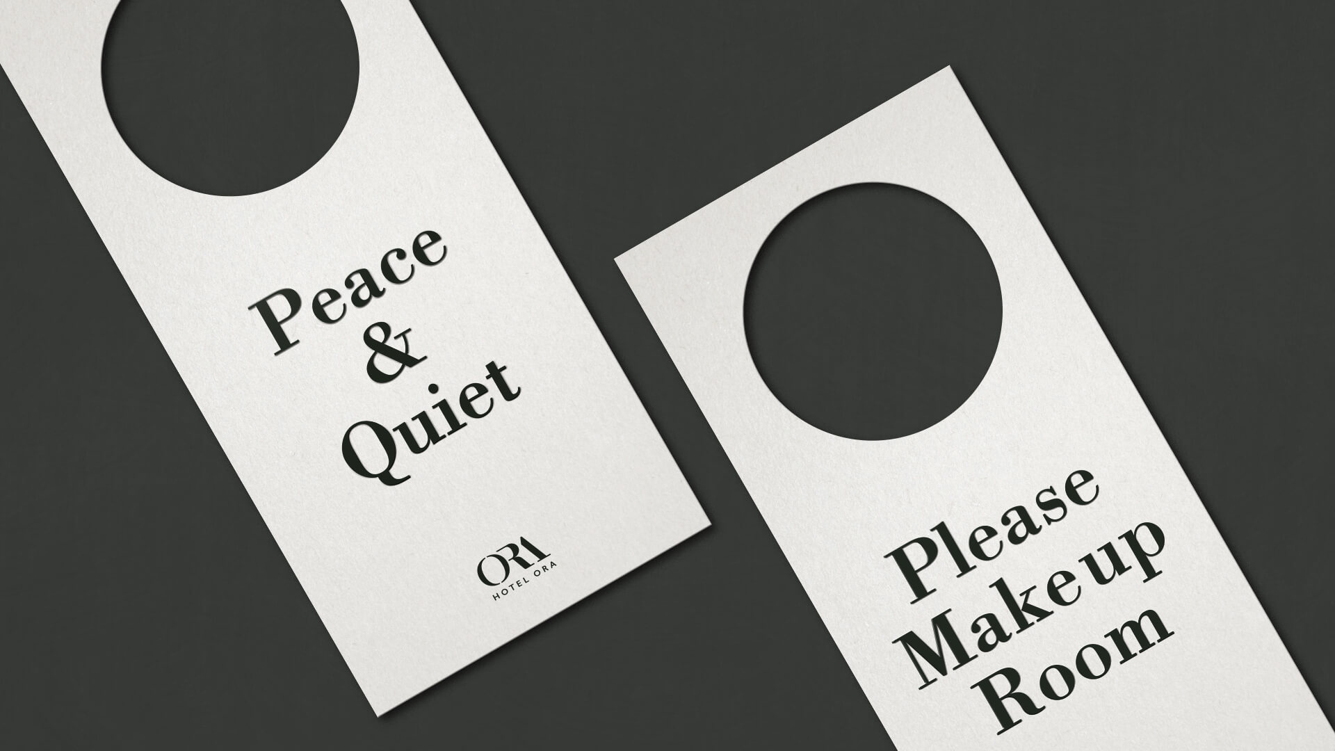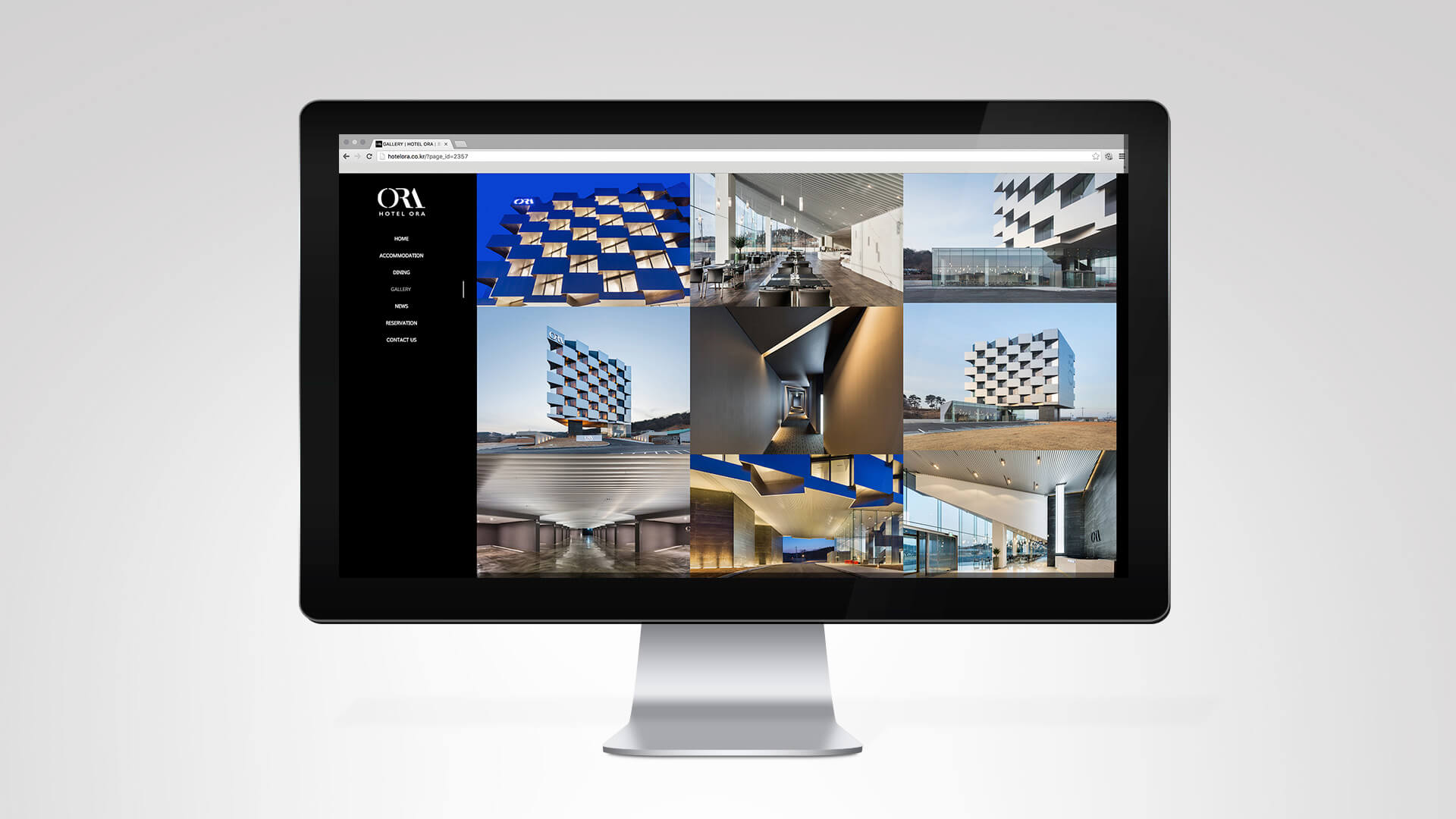 고객들이 머무는 동안 경험하는 모든 것들이 한데 묶여 Hotel ORA만의 ‘브랜드 경험’으로 자리잡을 수 있도록, 메인 BI는 단순하고 명확한 Wordmark 구조에 Hotel ORA의 장점을 나타내는 아주 작은 시각적 요소 (Invisible Space)에 담아 표현하였습니다. Hotel ORA의 건축적, 공간 적 세련미를 BI에서 표현하기 위해 Bodoni 서체를 활용하였고, 사인시스템 등에서도 Bodoni의 세련미를 느낄 수 있도록 디자인하였습니다. 또한, Hotel ORA의 곳곳에 활용되는 Visual Graphic 은 건축의 큰 특징인 ‘사각형 모듈’에서 아이디어를 얻었고, 모듈을 단순화한 형태로 정교하게 다듬 어 Hotel ORA를 상징하는 또 하나의 강력한 시각적 요소로 사용하고 있습니다.