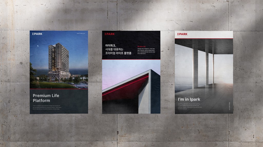 아이파크 브랜드 리뉴얼을 진행했습니다. 기존의 정체된 브랜드 이미지에서 절제된 표현방식과 소재의 차별화를 통해 고급스러움을 표현하고 로고, 타이포, 픽토그램 등 시각요소를 정교화했습니다. 브랜드 로고의 문제점인 낮은 가시성을 단단하고 안정적인 형태를 통해 자신감 있는 아이파크 로고로 디자인했습니다.프리미엄 브랜드로 기존의 원색에 가까운 레드컬러에서 진중하고 차분하며 정제된 레드컬러로 변화를 주었고,메인컬러 외에 보조색상의 활용성과 비율 그리고 새로운 팔레트 구성으로 절제된 프리미엄을 구현했습니다. 기존의 사용성이 떨어지는 그래픽패턴은 고객접점과 실제 사용하는 상황과 맥락에 맞게 레드라인과 로고의 조형에서 온 그래픽 패턴, 주거의 다양한 모습을 담은 모듈 모티프 등세가지의 시스템을 만들어 아이파크가 지향하는 프리미엄함을 표현했습니다.