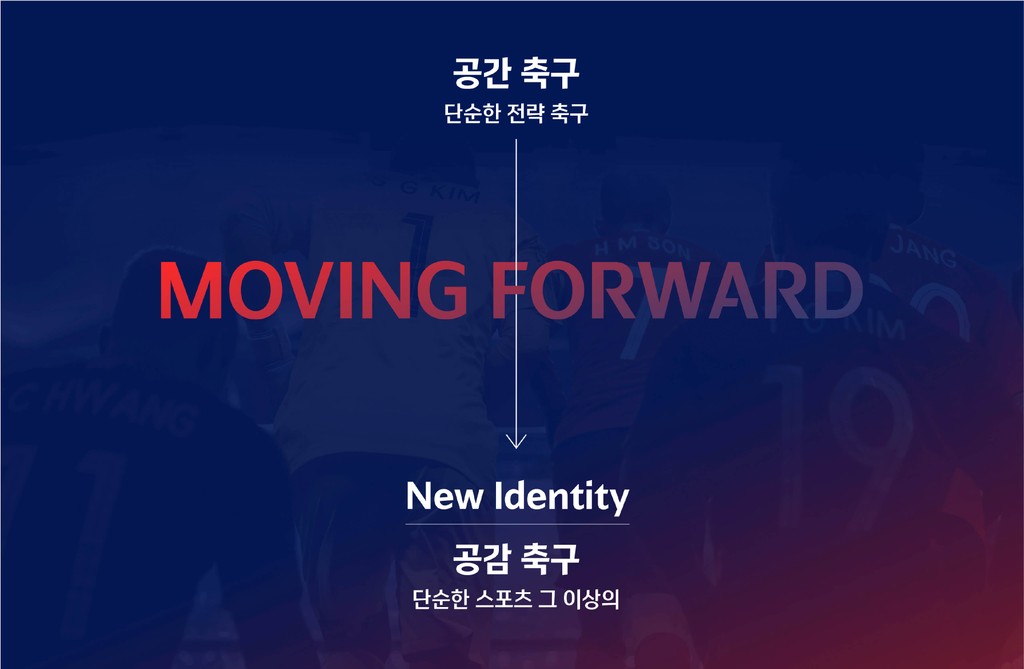 승리를 위해서 처절하게 싸웠던 축구가 과거의 모습이었다면 지금부터의 한국 축구는 지속적인 발전으로 즐길 수 있는 '공감축구'로 거듭나는 모습이 필요합니다. '공감축구'는 스포츠 그 이상의 즐거움과 화합, 발전적 스토리를 담고 있는 최고의 축제를 표현합니다.