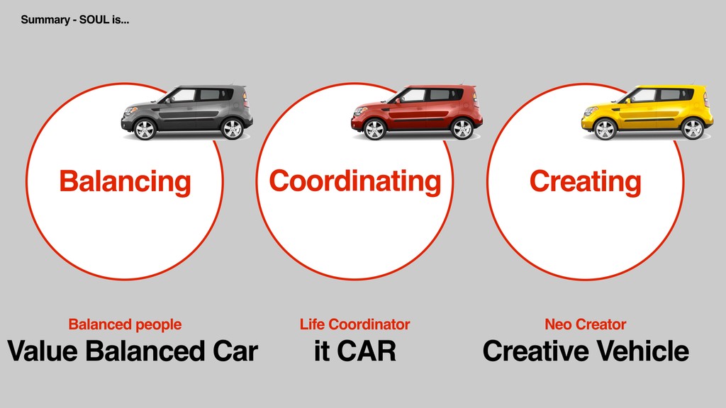 Soul의 소비자는 누구일까요? 우리는 한층 변화된 2세대 Soul이 더 많은 소비자와 교감할 수 있는 방법을 고민했습니다. Soul의 브랜드 정체성을 찾아가는 과정은 자동차를 구매하는 총체적인 경험을 파악하는 것에서부터, 자동차와 운전자의 친밀도를 정의하는 것, Soul의 탄생 배경과 과정, 개발자의 비하인드 스토리를 수집하고 실제로 Soul을 구매한 소비자들의 이야기를 듣는 것까지 매우 넓은 범위로 진행되었습니다.