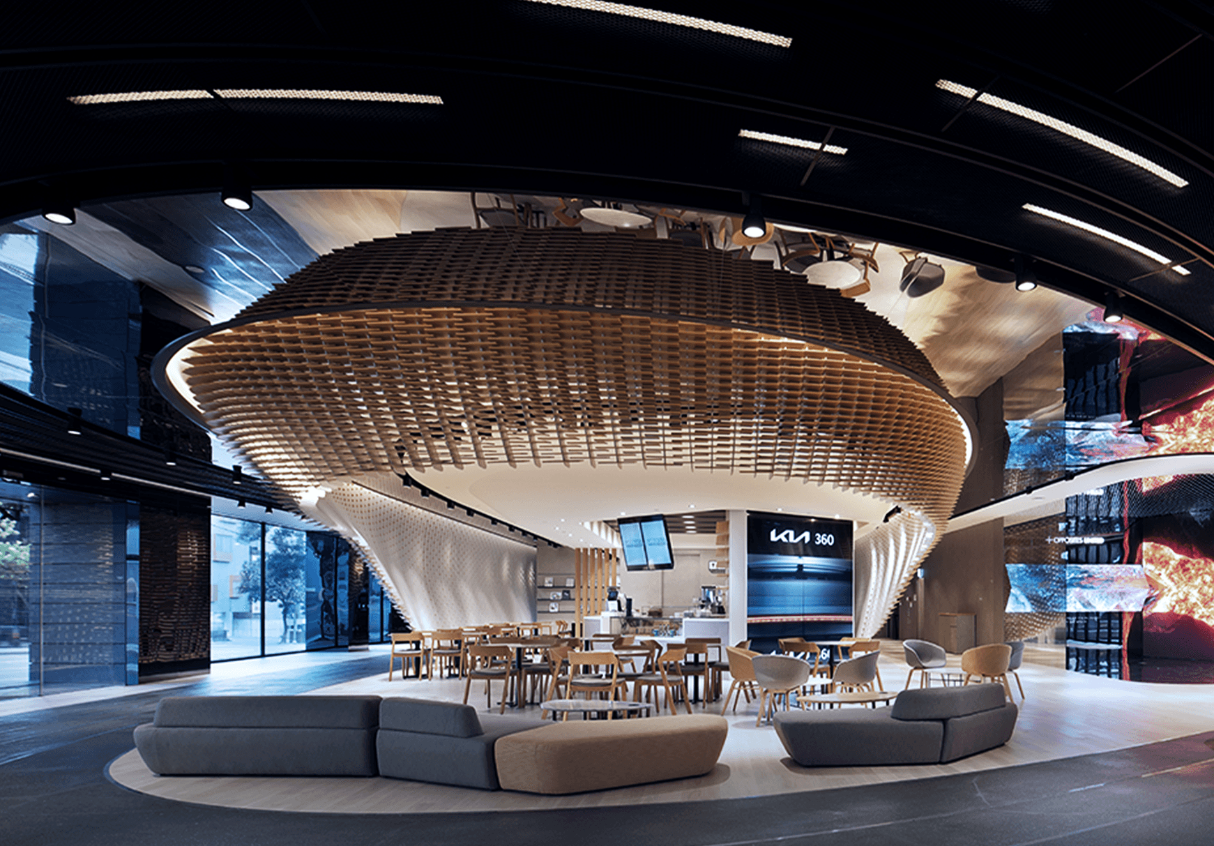 기아는 움직임을 통해 영감을 얻을 수 있다고 믿었습니다. 영감을 얻을 수 있는 공간과 삶의 아이디어를 떠올릴 수 있는 순간을 창조하는 것, 그것이 바로 기아가 존재하는 이유라고 말이죠. Kia360은 이러한 기아가 전달하고자 하는 영감을 360°로 펼쳐진 트랙을 따라 걸으며 기아의 새로운 브랜드와 디자인 철학을 이해하고 곧 다가올 EV시대를 상상할 수 있도록 구성된 모빌리티 복합문화공간입니다.