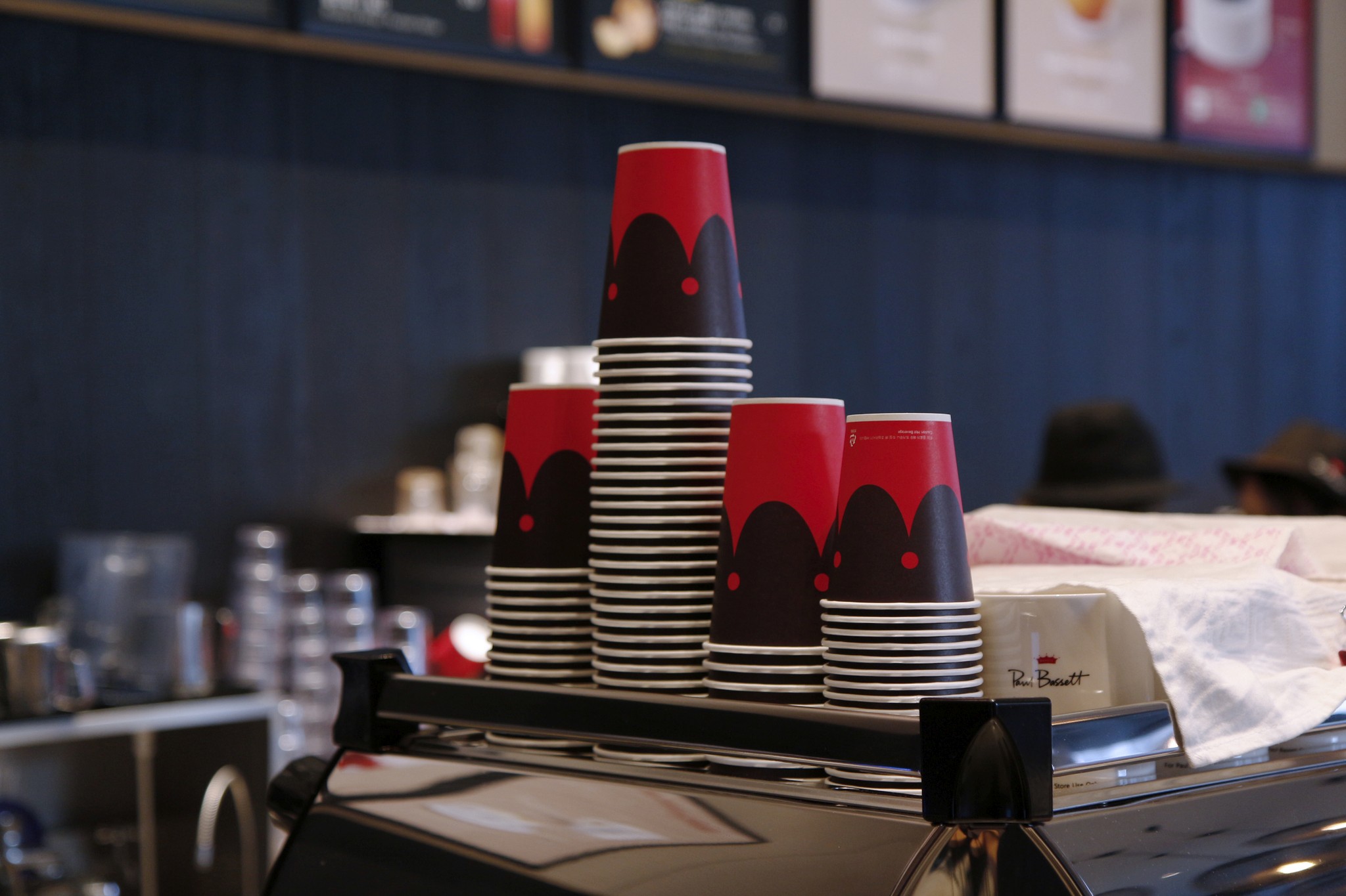 폴바셋 워드마크를 활용하여 모던하고 세련된 분위기의 그래픽 패턴을 개발하여 다양한 접점에 표현하고 브랜드 심벌의 상징인 크라운이 햇빛에 빛나는 잔상의 느낌을 ‘마름모’로 형상화해 패턴을 개발했습니다. 마름모 중앙에 라인을 추가하여 브랜드 품질과 맛, 신선도의 근간이 되는 원두의 모습을 담았습니다. 이를 일정하게 반복한 패턴은 브랜드의 고집과 철학, 세련된 느낌을 나타냅니다.