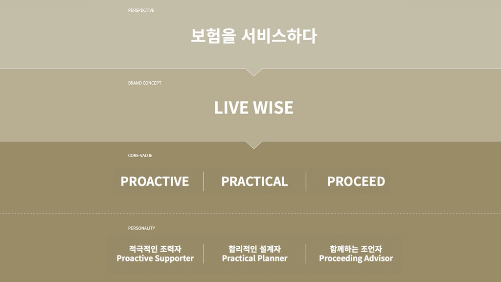 보험을 단순히 판매하는 것이 아니라 고객에게 먼저 다가서고 고객의 삶에 실제적인 혜택을 제공하며, 지속적으로 친근하게 고객과 함께하고자 하는 마음과 의지를 담았습니다. 이러한 브랜드 컨셉을 고객에게 직접적으로 전달하기 위해 보험 계약의 조회, 보험금 청구까지 할 수 있는 서비스 굿리치 앱과, 자산관리를 원하는 고객을 위한 상담공간인 굿리치 라운지를 통해 차별화된 브랜드 경험을 고객에게 전달합니다.