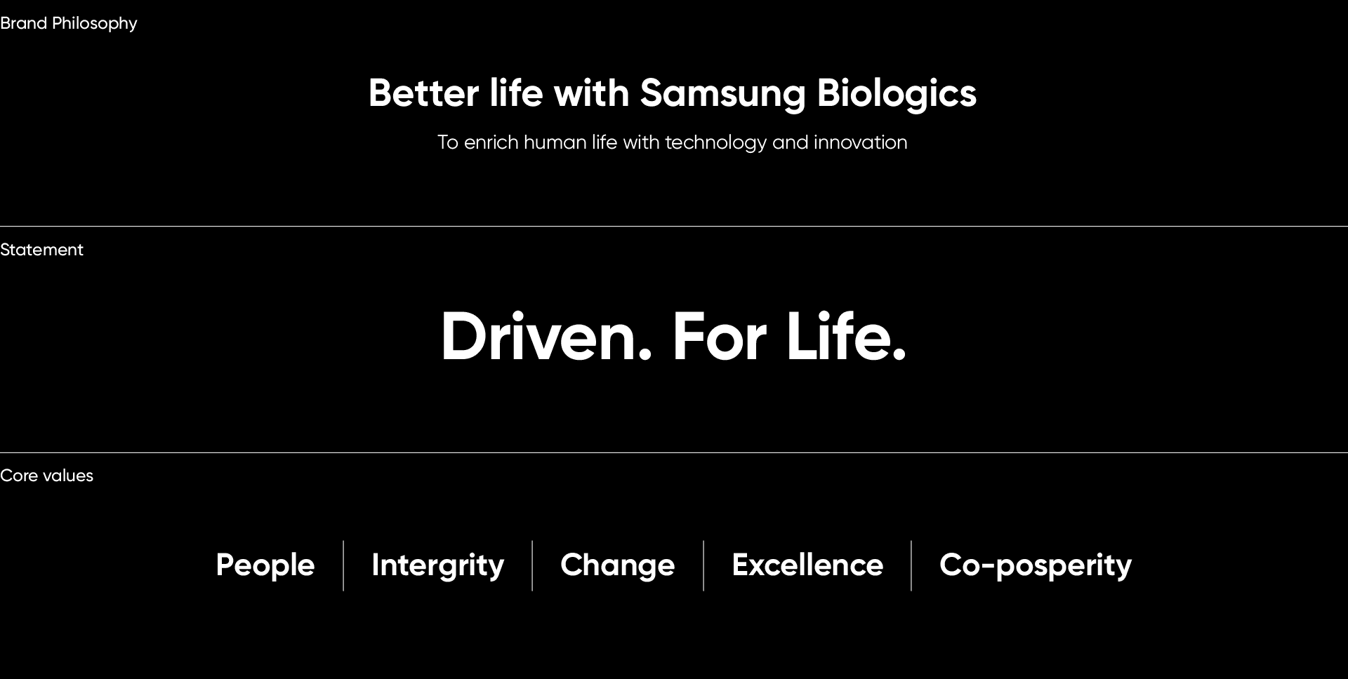 그래서 우리는 분명한 메시지를 전달하고 명확하게 활용될 수 있는 비주얼 아이덴티티, 젊고 열정있는 삼성바이오로직스 내부 구성원 모두가 공감할 수 있는 디자인시스템(비주얼 에셋) 개발을 목표로 하였습니다.