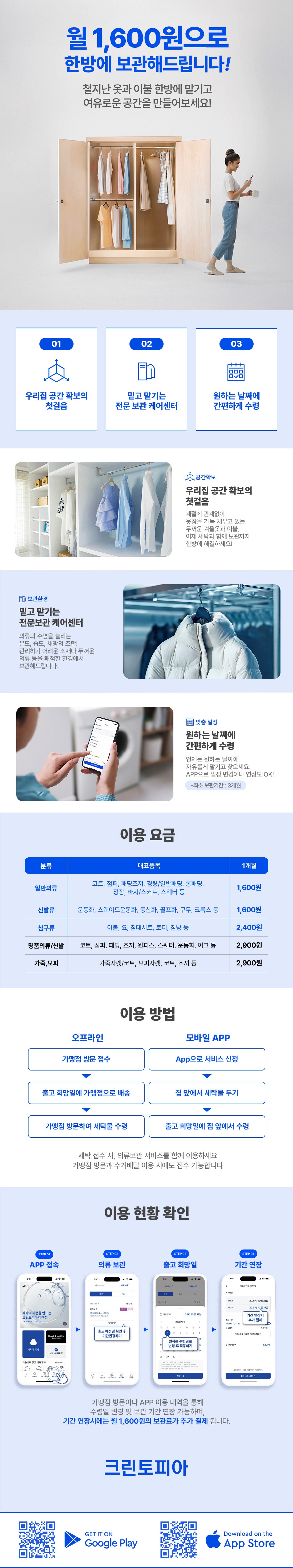 친근하고 익숙한 크린토피아의 세탁 서비스가 그 무엇보다 나은 서비스,