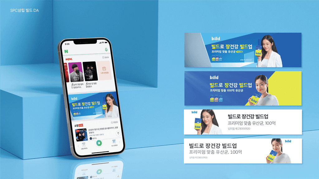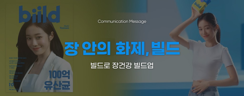 이미 포화 상태인 유산균 시장에서 New Brand 빌드를 효과적으로 알리기 위해선 쉽고 직관적인 메시지를 필두로 브랜드를 각인시키는 것이 필요했습니다. 이 메시지를 전달할 현세대의 대세 모델을 활용해 명확한 제품 효능을 각인시킬 필요도 있었죠. 혜성처럼 등장해 연일 화제의 일상을 보내며 성장해 나가고 있는 배우 노윤서의 모습에서 유산균 시장에 신선한 포지션으로 등장한 빌드와의 유사성을 발견했습니다. 이 점에 착안하여 빌드 캠페인을 이끌 커뮤니케이션 메시지를 개발했습니다.