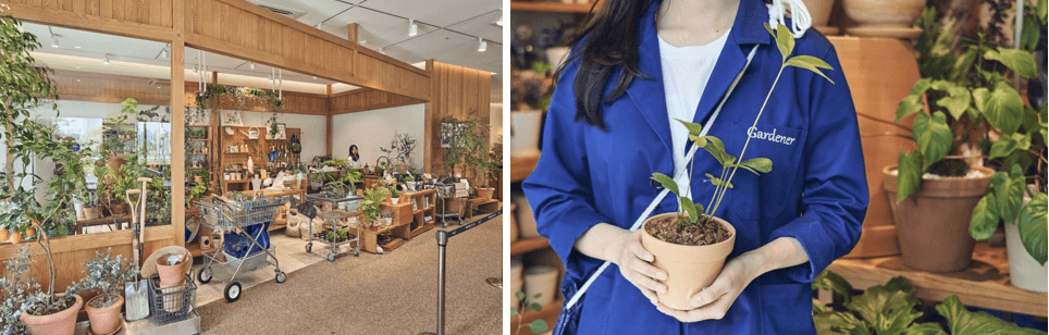 식물원에서는 다른 곳에서는 흔히 볼 수 없는 식물들을 큐레이션 한다. 누구나 키우기 쉬운 것보다는 키우는 재미가 있고 정성이 필요한 식물들이 많다. 그리고 식물에 대한 자세한 이야기는 블루 가운을 입은 가드너가 설명해 준다. 식물 외에 진열되어 있는 다른 제품들도 대부분 재생 가능한 원료로 만들어졌거나 오가닉 제품이다. 나아가 주민들을 위한 플라워 클래스나 화훼농가를 살리는 플라워 플리마켓을 열기도 한다. 제품 큐레이션뿐만 아니라, 앞장서서 그들이 중요시하는 철학과 가치를 실천하고 있는 것이다. 이러한 큐레이션 편집숍은 이 곳을 찾는 같은 취향과 가치관, 같은 라이프스타일을 즐기는 사람들에게는 제품 구매 그 이상의 공간이 된다.