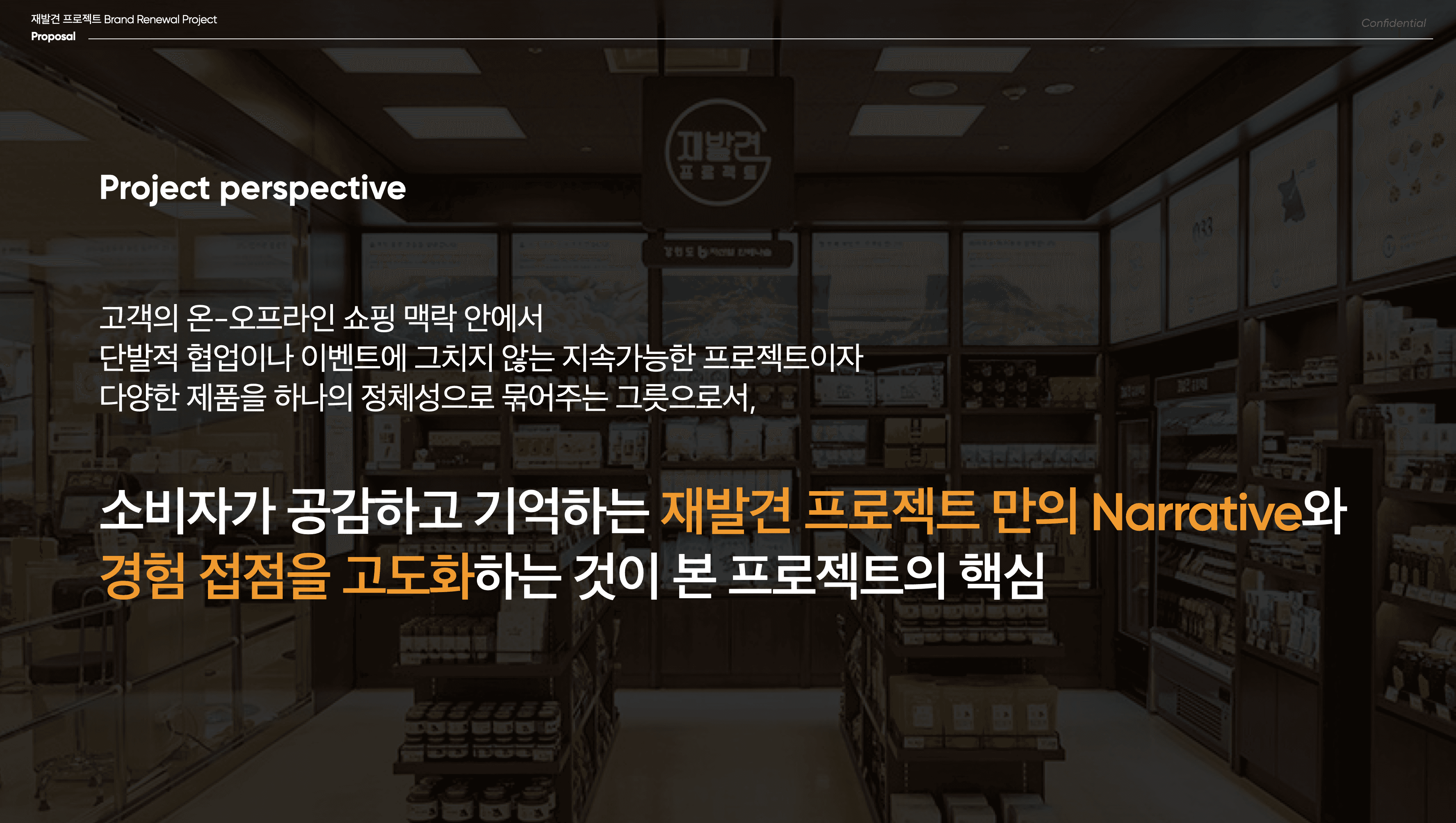어느 순간부터 ‘로컬’이라는 단어가 지나치게 많이 소비되고 있다는 생각이 들었습니다. 로컬푸드, 로컬브랜드, 로컬라이징, 로컬기획전. 언뜻 들으면 따뜻하고 정당한 말들이지만, 지나치게 반복된 단어는 종종 자신이 가리키고자 했던 본래의 감각을 잃어버리기도 합니다. ‘재발견 프로젝트’가 처해 있던 브랜드 환경은 바로 그런 언어적 피로감의 한복판에 놓여 있었습니다.