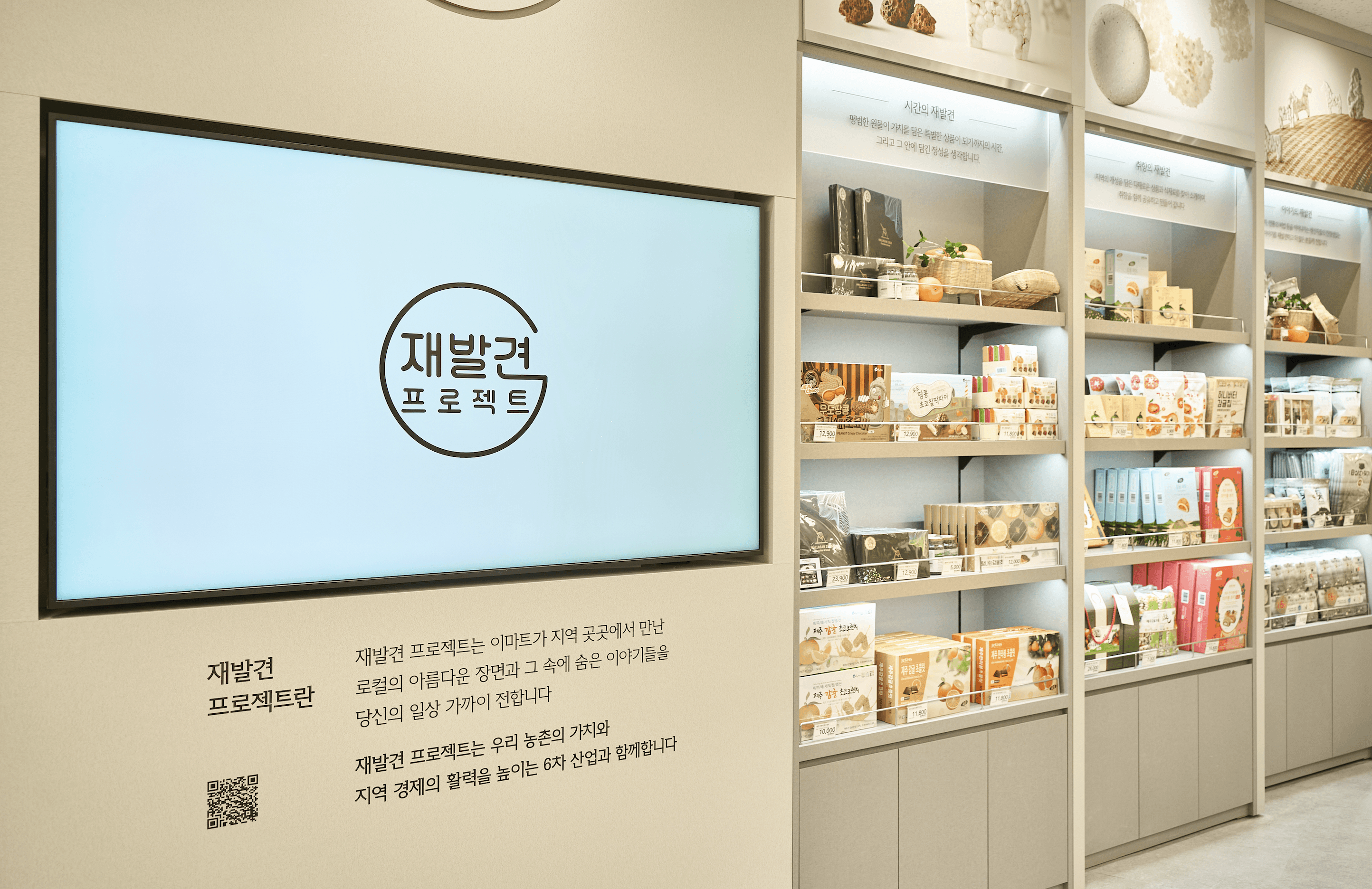그렇게 재발견 프로젝트는 마트 안에서 매일 상영되는 로컬의 명장면들로 구성된 조용한 연출극이 되었습니다. 조명이 비추면 장면이 열리고, 고객은 그 장면을 스쳐 지나가는 관객이 됩니다. 그리고 어떤 관객은, 그 장면을 기억해 다시 돌아오기도 하겠지요.