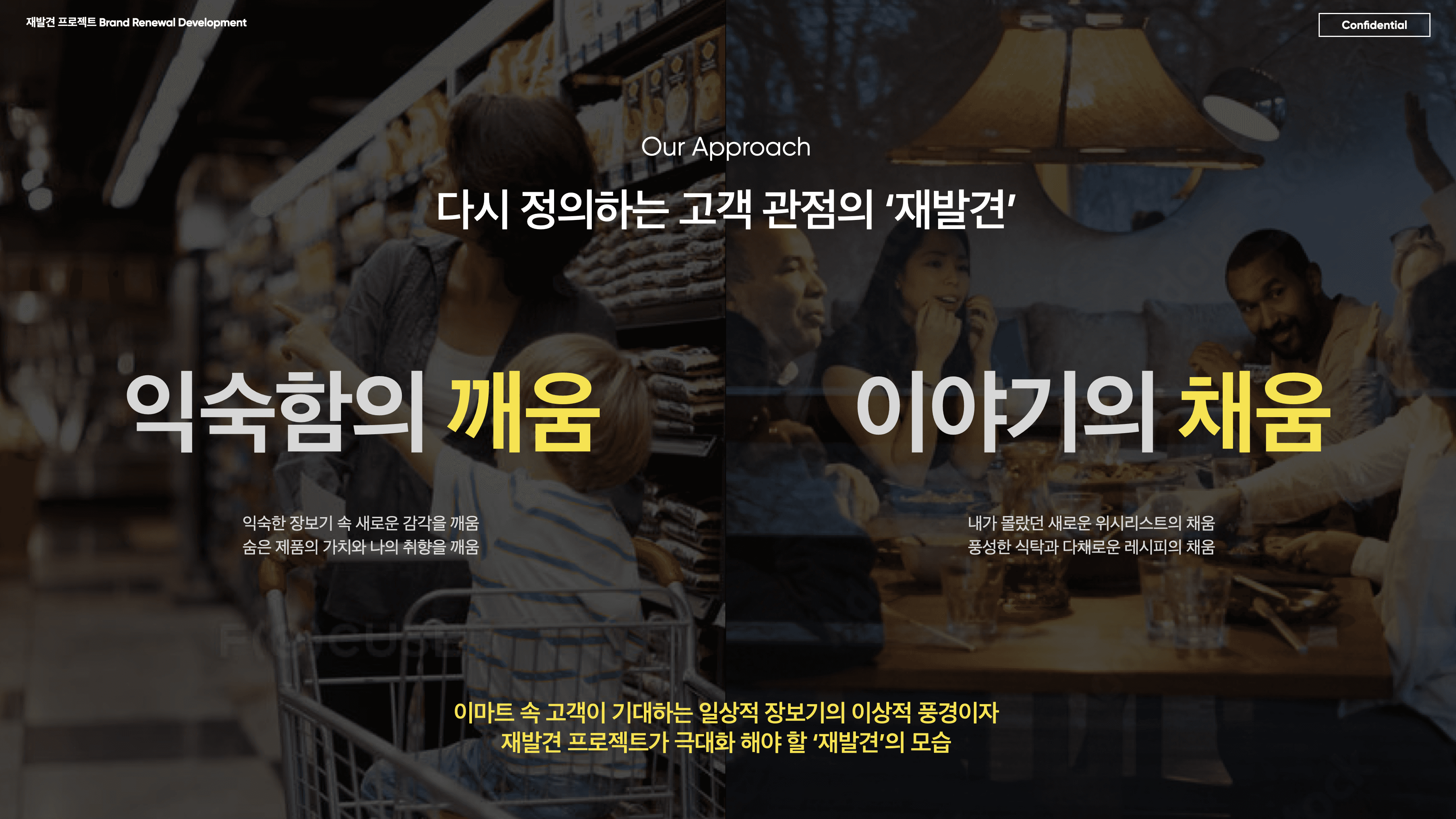 그래서 우리는 ‘재발견’이라는 단어를 공급자의 언어가 아닌 소비자의 언어로 다시 써보기로 했습니다. 지역 생산자들의 정성과 손맛, 자연의 조건과 토양의 이야기를 말하는 데서 멈추는 것이 아니라, 그 상품이 이마트라는 일상의 루틴 안에서 어떻게 다르게 보이고, 어떤 감정으로 선택되고, 누구의 식탁 위에 오르는지를 상상하는 일이었죠. 단순히 좋은 것을 소개하는 브랜드가 아니라, 알아보지 못했던 좋은 것을 알아보게 만드는 브랜드, 그것이 ‘재발견’이 지향해야 할 진짜 역할이었습니다.
