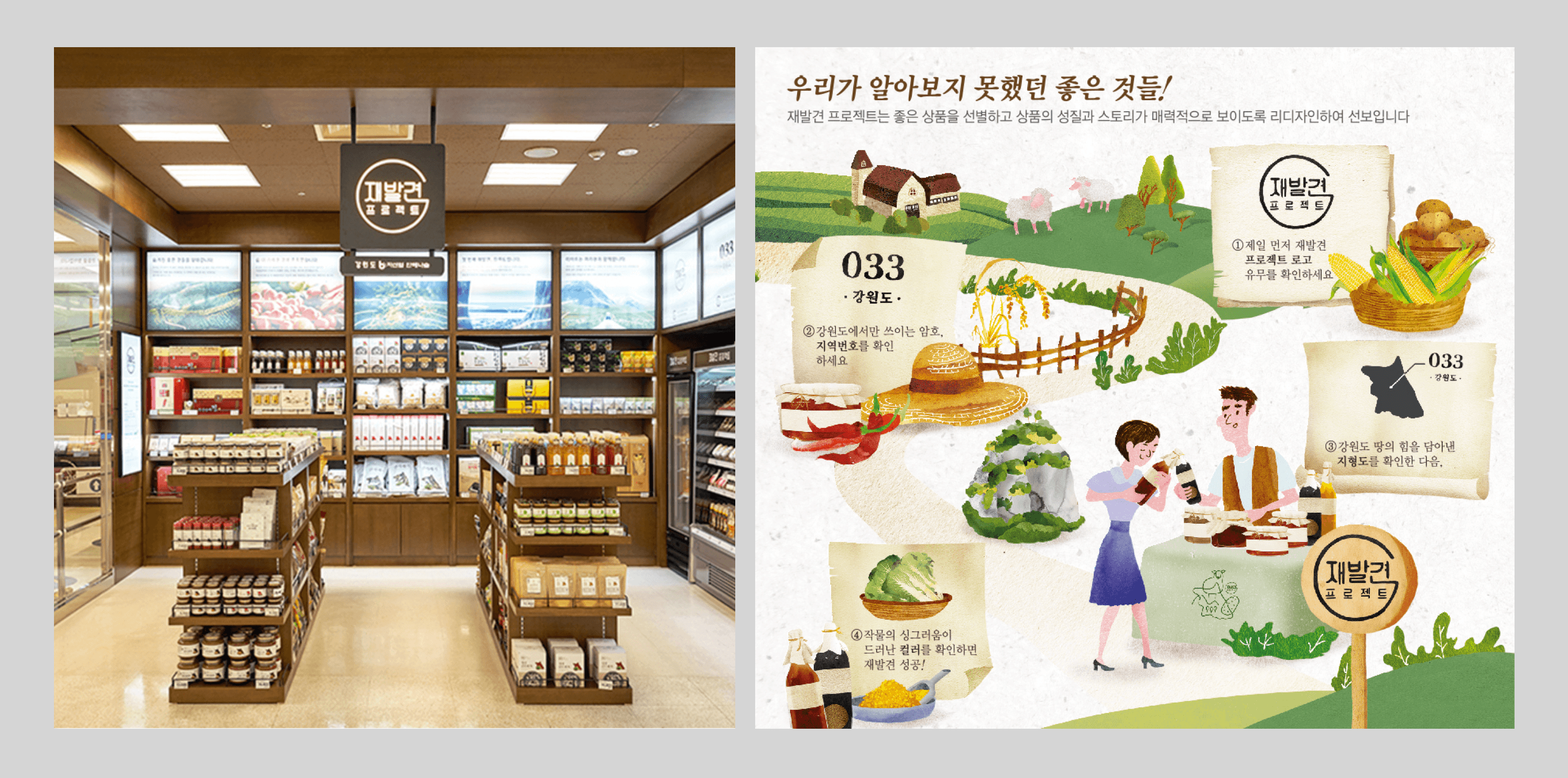 ‘재발견’이라는 말은 처음 들었을 때보다, 몇 번 곱씹었을 때 더 많은 풍경을 떠올리게 했습니다. 우리는 그것이 지역 상품이나 로컬 특산물을 의미하는 브랜드의 이름이라고 생각했지만, 사실 그 이름이 지칭하는 대상은 훨씬 더 복합적이었습니다. 재발견의 대상은 상품 그 자체가 아니라, 그 상품을 경험하는 방식이어야 했습니다. 이미 많은 브랜드들이 지역 생산자를 소개하고, 아름다운 스토리와 자연 친화적 이미지를 패키지에 담아내고 있었습니다.